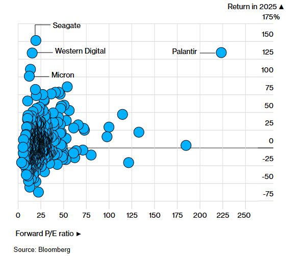在2025年头,西部数据的远期市盈率不及6倍,希捷与好意思光则在10倍傍边踟蹰。尽管而后估值有所攀升,但三者刻下的市盈率仍要低于标普500指数——该指数基于畴昔12个月预期利润的远期市盈率为23倍。